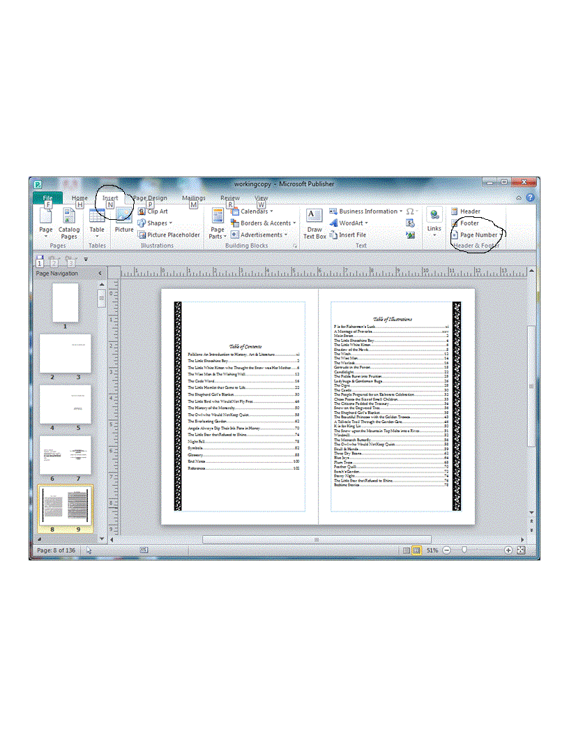 Page numbering, MS Publisher 2010.