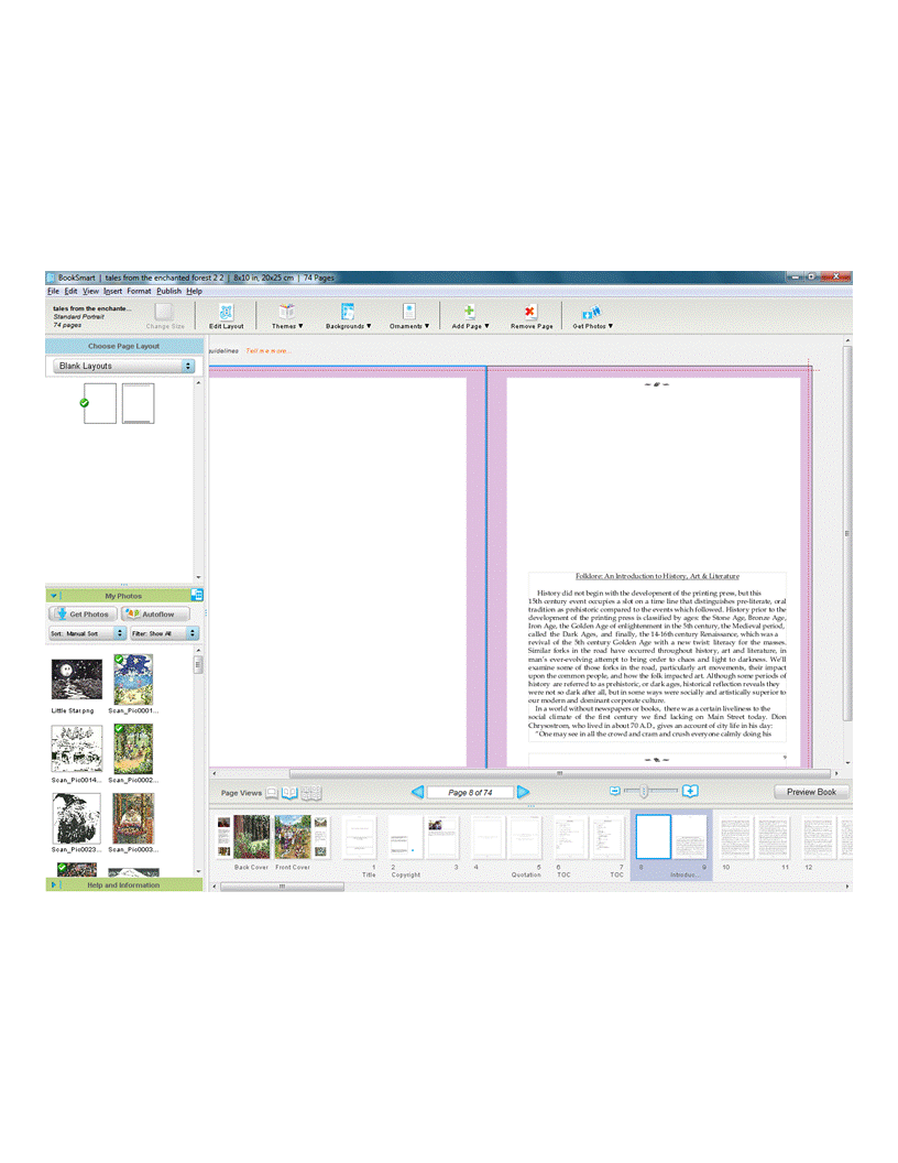 First Edition at Blurb.com: The first version of my book was created at Blurb.com. You can download software from the site to create your book called Book Smart. When I downloaded the software a few years ago, it was free. I believe the price may now be $3.95, but it may still be free. Blurb provides TEMPLATES to create your book. There are some tutorials on the site that provide instructions for working with the templates. Since I last worked in Blurb, they have incorporated a Microsoft Word add-in feature. I am no longer selling my book at Blurb. I have added a lot of information to my book and the second version at Lulu.com is a much better version. Although Blurb does provide a verly lovely finished product, I would reccommend it for photography or picture books with small blocks of text rather than large segments of text combined with graphics. It's been a long time since I have used them and the program may be more user friendly than it was when I used them. I have included a video for them and a screen shot of the software as it was when I used it.